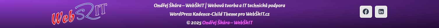 Taky že jo. Celý web ladím do své oblíbené fialové, logo jsem však navrhnul v kombinaci červeného Web, modrého vlastnoručního podpisu Šk a fialového IT. Zdůvodnil jsem to tím, že červená plus modrá přece rovná se fialová. Potud v pořádku. Jenže na webu nemám žádný červený ani modrý prvek. Navíc: logo má tři části, každá je jiným typem písma a pokud má každá ještě různou barvu, logo nemá žádný společný, sjednocující prvek.